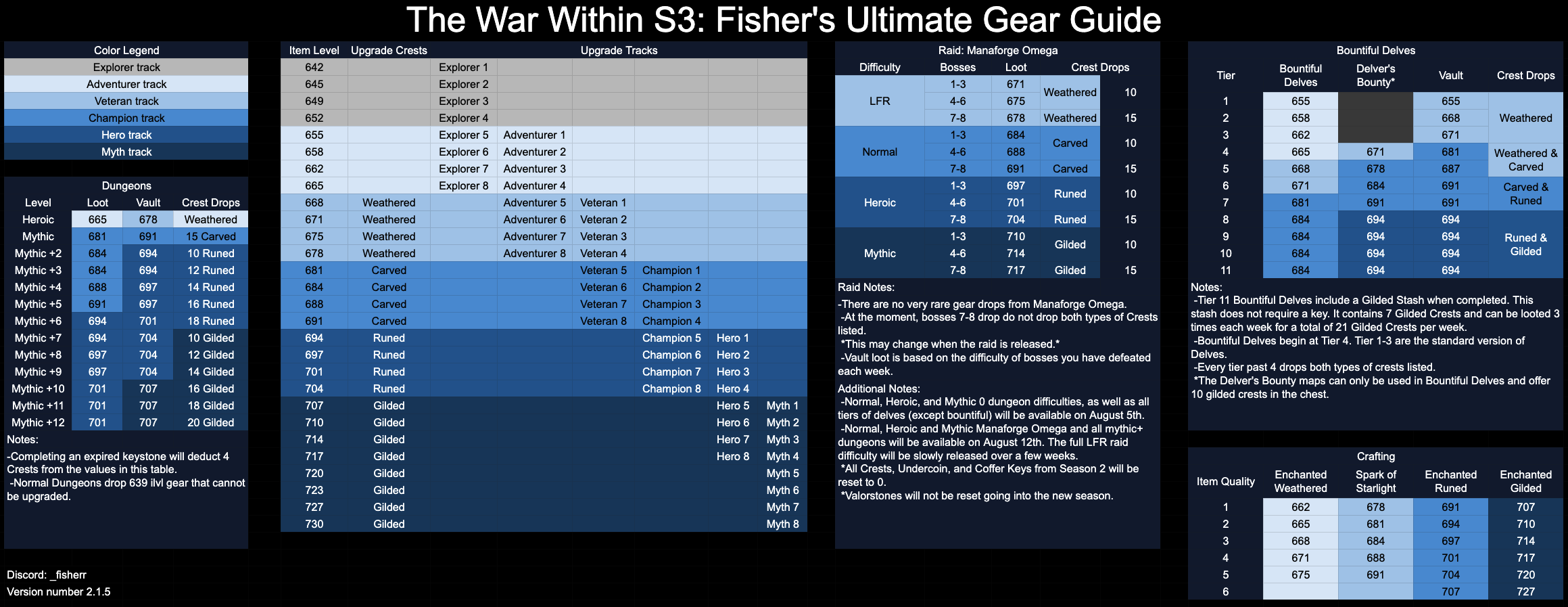 - Full Gilded Crest Cap: (From M+7 spam or Tier 11 Delves).